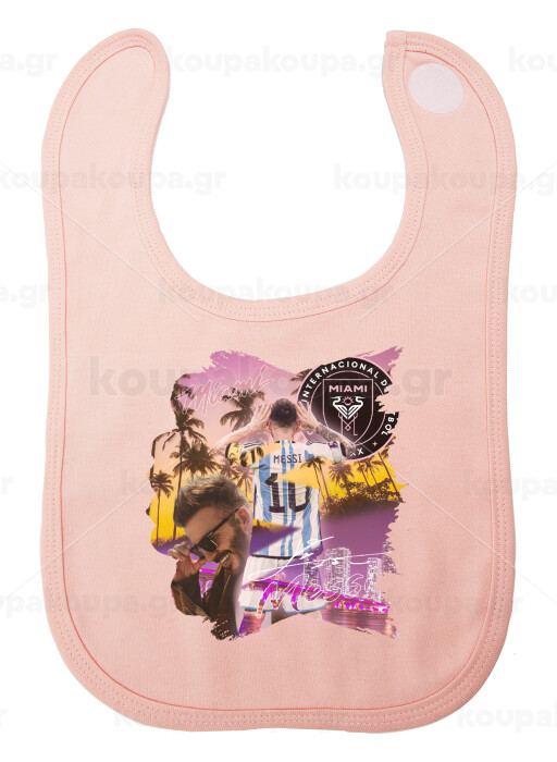 Lionel Messi Miami, Σαλιάρα με Σκρατς ΡΟΖ 100% Organic Cotton (0-18 months)