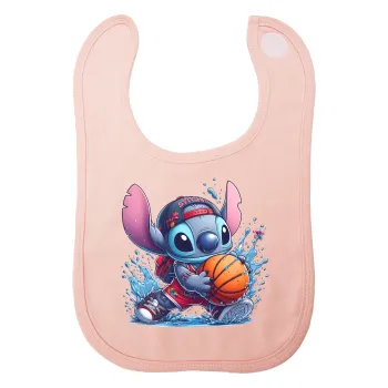 Stitch Basketball, Σαλιάρα με Σκρατς ΡΟΖ 100% Organic Cotton (0-18 months)