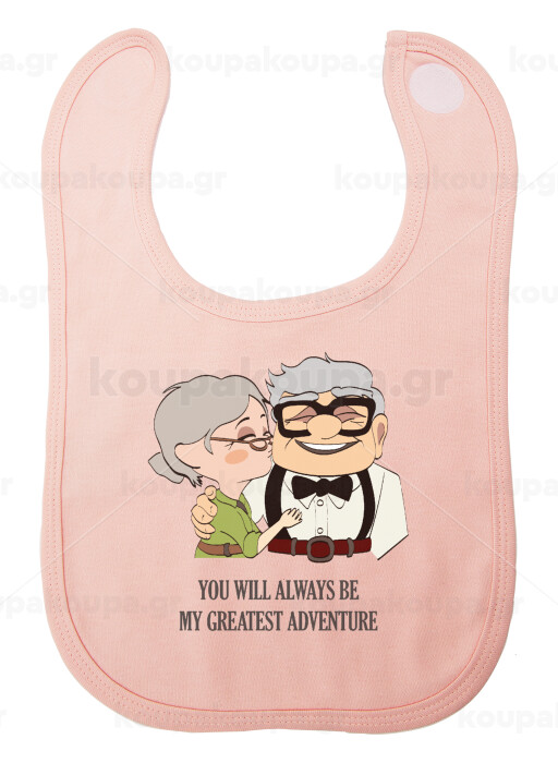 UP, YOU WILL ALWAYS BE MY GREATEST ADVENTURE, Σαλιάρα με Σκρατς ΡΟΖ 100% Organic Cotton (0-18 months)