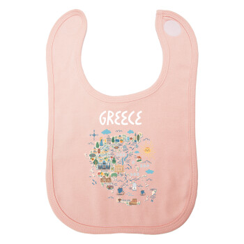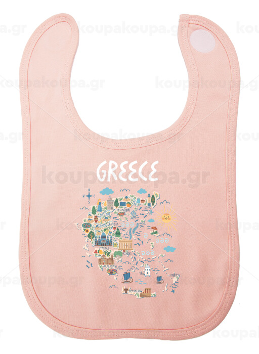 Greek map, Σαλιάρα με Σκρατς ΡΟΖ 100% Organic Cotton (0-18 months)