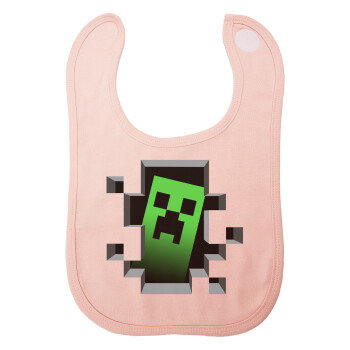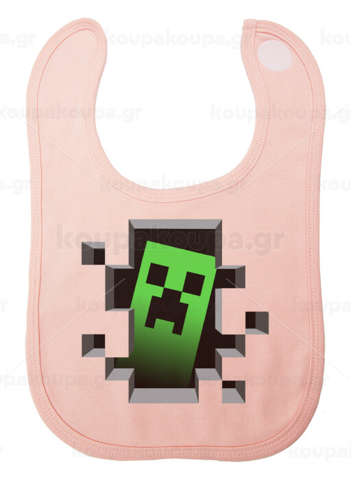 Minecraft creeper, Σαλιάρα με Σκρατς ΡΟΖ 100% Organic Cotton (0-18 months)