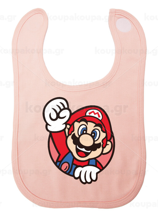 Super mario win, Σαλιάρα με Σκρατς ΡΟΖ 100% Organic Cotton (0-18 months)