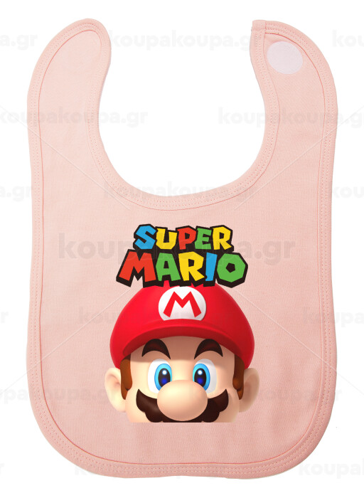 Super mario, Σαλιάρα με Σκρατς ΡΟΖ 100% Organic Cotton (0-18 months)