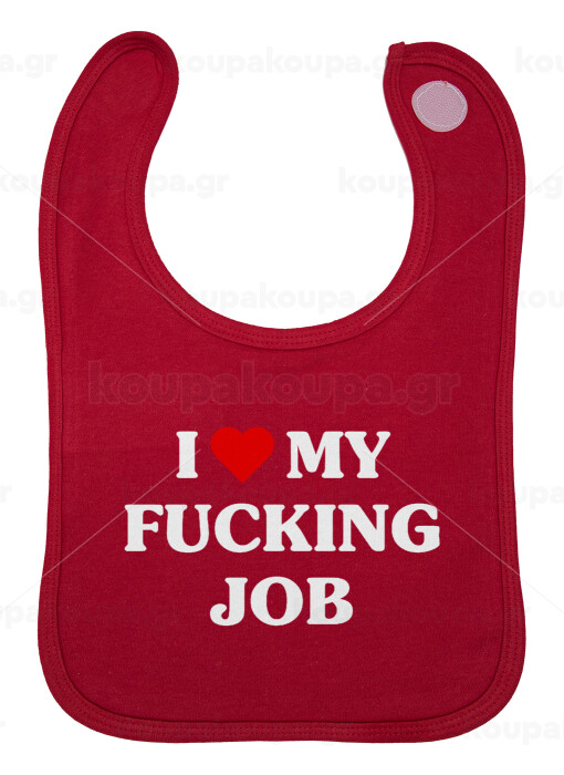 I love my fucking job, Σαλιάρα με Σκρατς Κόκκινη 100% Organic Cotton (0-18 months)