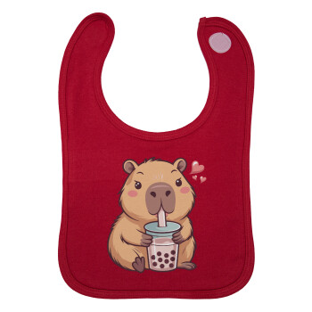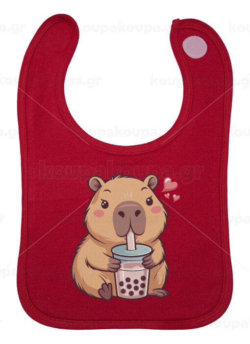 Capybara Bubble Tea, Σαλιάρα με Σκρατς Κόκκινη 100% Organic Cotton (0-18 months)