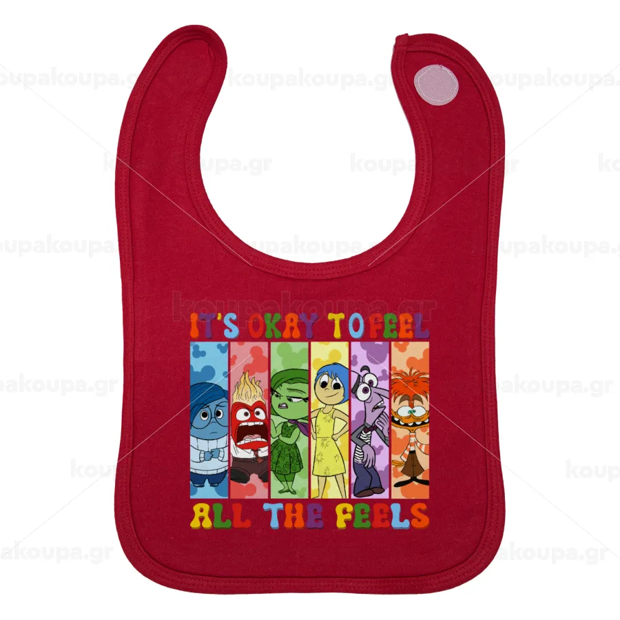 Inside Out It's Okay To Feel All The Feels , Σαλιάρα με Σκρατς Κόκκινη 100% Organic Cotton (0-18 months)
