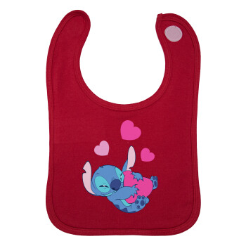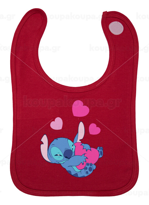 Lilo & Stitch hugs and hearts, Σαλιάρα με Σκρατς Κόκκινη 100% Organic Cotton (0-18 months)
