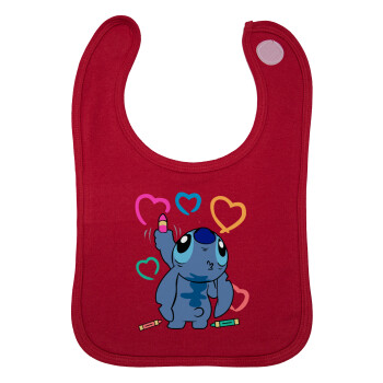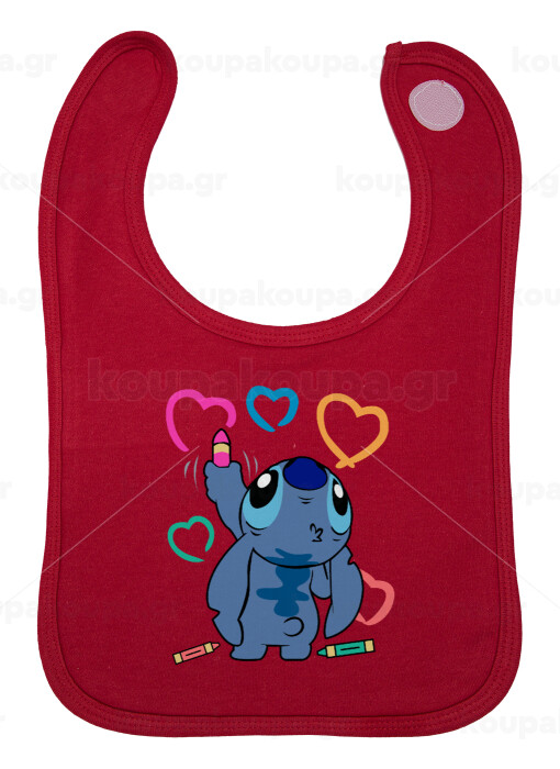 Lilo & Stitch painting, Σαλιάρα με Σκρατς Κόκκινη 100% Organic Cotton (0-18 months)