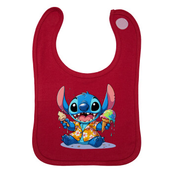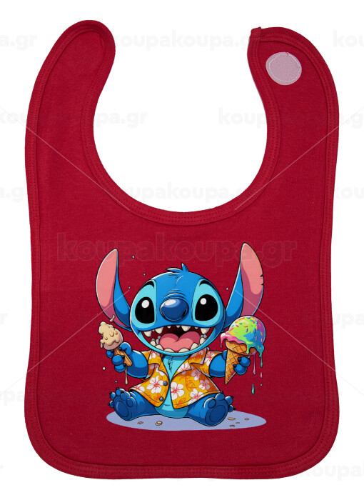 Stitch Ice cream, Σαλιάρα με Σκρατς Κόκκινη 100% Organic Cotton (0-18 months)