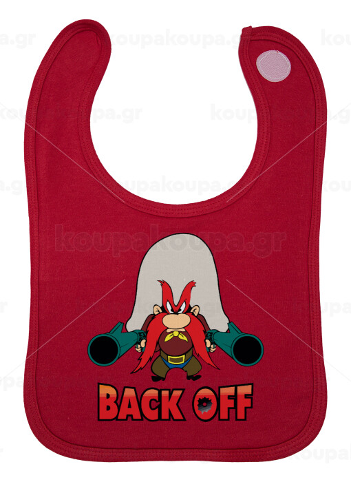 Yosemite Sam Back OFF, Σαλιάρα με Σκρατς Κόκκινη 100% Organic Cotton (0-18 months)