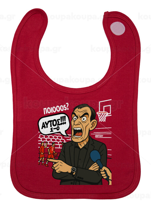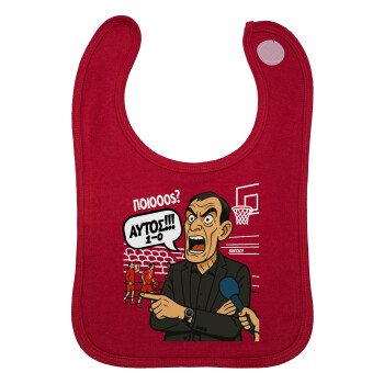 Μπαρτζό, Ποιος? Αυτός!!! 1-0, Σαλιάρα με Σκρατς Κόκκινη 100% Organic Cotton (0-18 months)