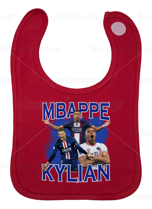 Kylian Mbappé, Σαλιάρα με Σκρατς Κόκκινη 100% Organic Cotton (0-18 months)