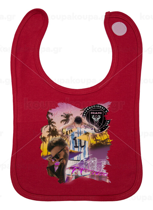 Lionel Messi Miami, Σαλιάρα με Σκρατς Κόκκινη 100% Organic Cotton (0-18 months)