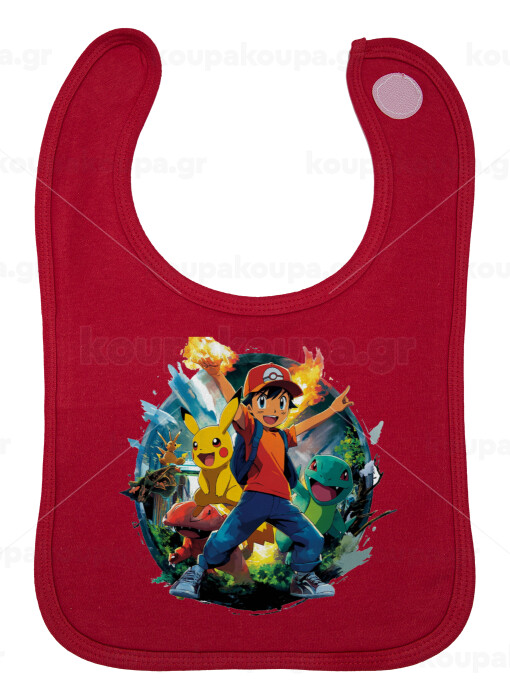 Ash Ketchum & Pikachu, Σαλιάρα με Σκρατς Κόκκινη 100% Organic Cotton (0-18 months)