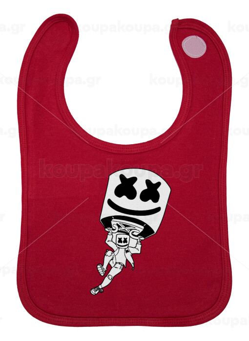 Fortnite Marshmello, Σαλιάρα με Σκρατς Κόκκινη 100% Organic Cotton (0-18 months)