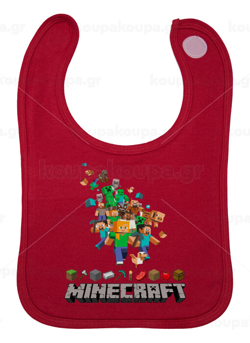 Minecraft adventure, Σαλιάρα με Σκρατς Κόκκινη 100% Organic Cotton (0-18 months)