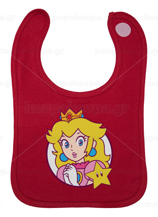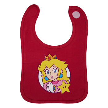 Princess Peach, Σαλιάρα με Σκρατς Κόκκινη 100% Organic Cotton (0-18 months)