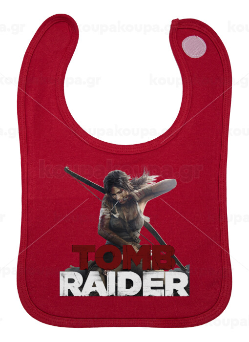 Tomb raider, Σαλιάρα με Σκρατς Κόκκινη 100% Organic Cotton (0-18 months)