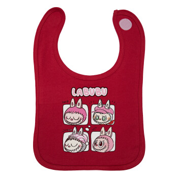 Labubu pink, Σαλιάρα με Σκρατς Κόκκινη 100% Organic Cotton (0-18 months)