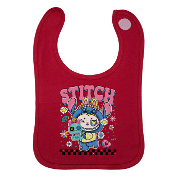 Labubu Stitch, Σαλιάρα με Σκρατς Κόκκινη 100% Organic Cotton (0-18 months)