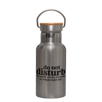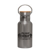 Do not disturb, Stainless steel metallic thermos flask, silver with a bamboo lid, double-walled, 350ml.