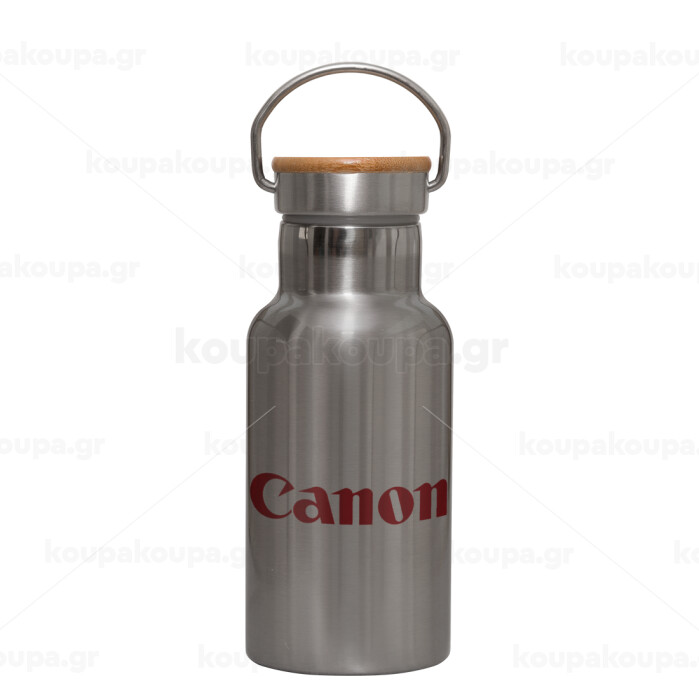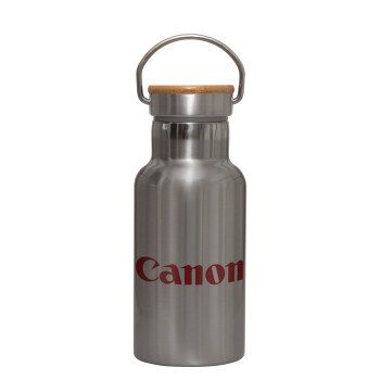 Canon, Stainless steel metallic thermos flask, silver with a bamboo lid, double-walled, 350ml.