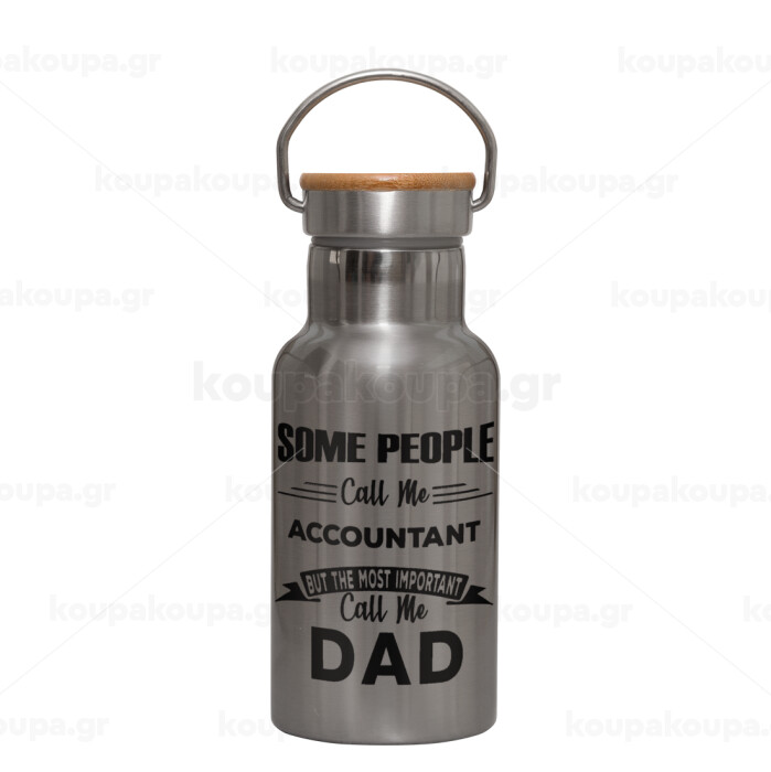 Some people call me accountant, Stainless steel metallic thermos flask, silver with a bamboo lid, double-walled, 350ml.