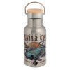 Wizard Flying Car, Stainless steel metallic thermos flask, silver with a bamboo lid, double-walled, 350ml.