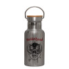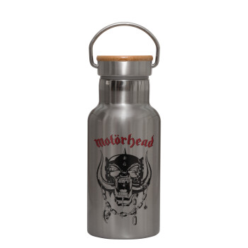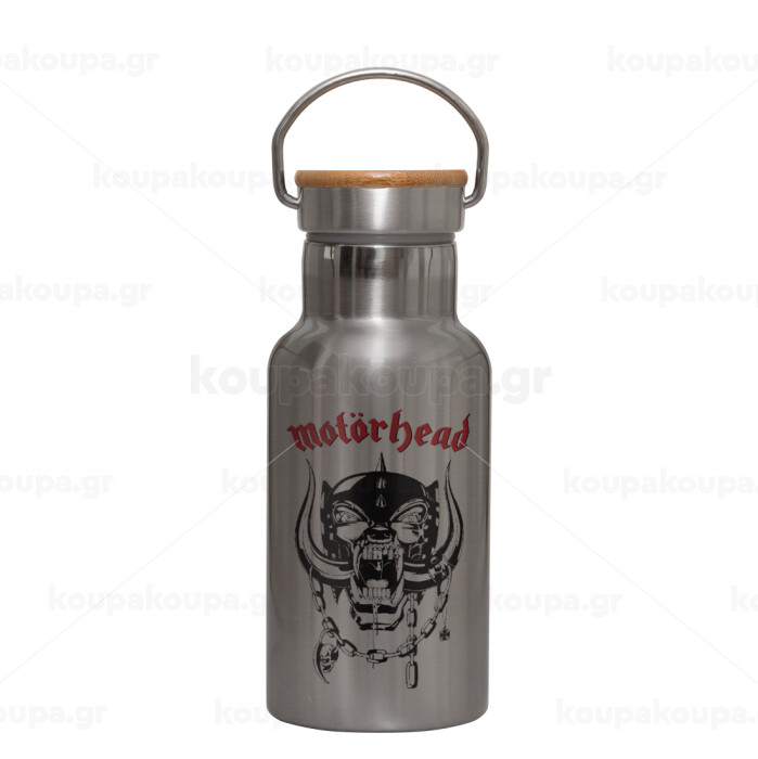 motorhead, Stainless steel metallic thermos flask, silver with a bamboo lid, double-walled, 350ml.
