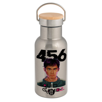 Squid game 456 Gi-Hun, Stainless steel metallic thermos flask, silver with a bamboo lid, double-walled, 350ml.