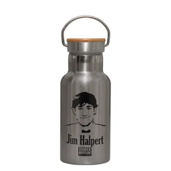 The office Jim Halpert, Stainless steel metallic thermos flask, silver with a bamboo lid, double-walled, 350ml.