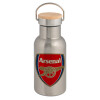 Arsenal, Stainless steel metallic thermos flask, silver with a bamboo lid, double-walled, 350ml.