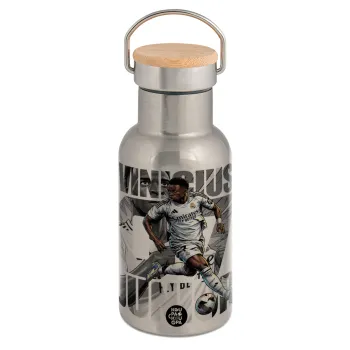 Vinícius Júnior (Βινίσιους Ζούνιορ), Stainless steel metallic thermos flask, silver with a bamboo lid, double-walled, 350ml.