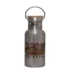 FRIENDS xmas, Stainless steel metallic thermos flask, silver with a bamboo lid, double-walled, 350ml.