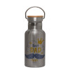 Best dad ever ο Βασιλιάς, Stainless steel metallic thermos flask, silver with a bamboo lid, double-walled, 350ml.