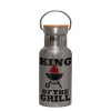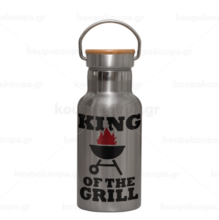 KING of the Grill, Stainless steel metallic thermos flask, silver with a bamboo lid, double-walled, 350ml.