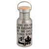 I Love You for Your Personality But that D... Is a Huge Bonus , Stainless steel metallic thermos flask, silver with a bamboo lid, double-walled, 350ml.