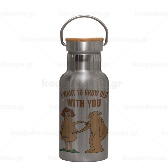 I want to grow old with you, Stainless steel metallic thermos flask, silver with a bamboo lid, double-walled, 350ml.