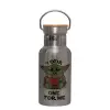 Yoda, one for me , Stainless steel metallic thermos flask, silver with a bamboo lid, double-walled, 350ml.