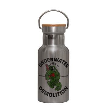 Underwater Demolition, Stainless steel metallic thermos flask, silver with a bamboo lid, double-walled, 350ml.