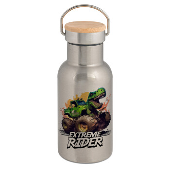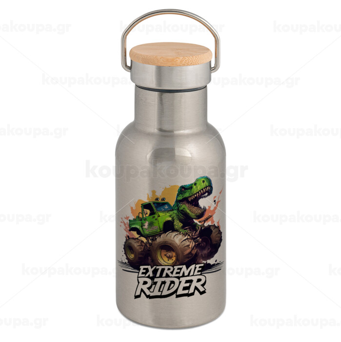 Extreme rider Dyno, Stainless steel metallic thermos flask, silver with a bamboo lid, double-walled, 350ml.