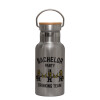 Bachelor Party Drinking Team, Stainless steel metallic thermos flask, silver with a bamboo lid, double-walled, 350ml.