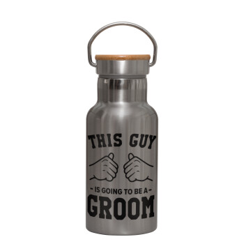 This Guy is going to be a GROOM, Stainless steel metallic thermos flask, silver with a bamboo lid, double-walled, 350ml.