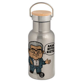 Κουτσούμπας, "Αλλά αυτοί είστε!", Stainless steel metallic thermos flask, silver with a bamboo lid, double-walled, 350ml.