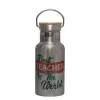 Best teacher in the World!, Stainless steel metallic thermos flask, silver with a bamboo lid, double-walled, 350ml.