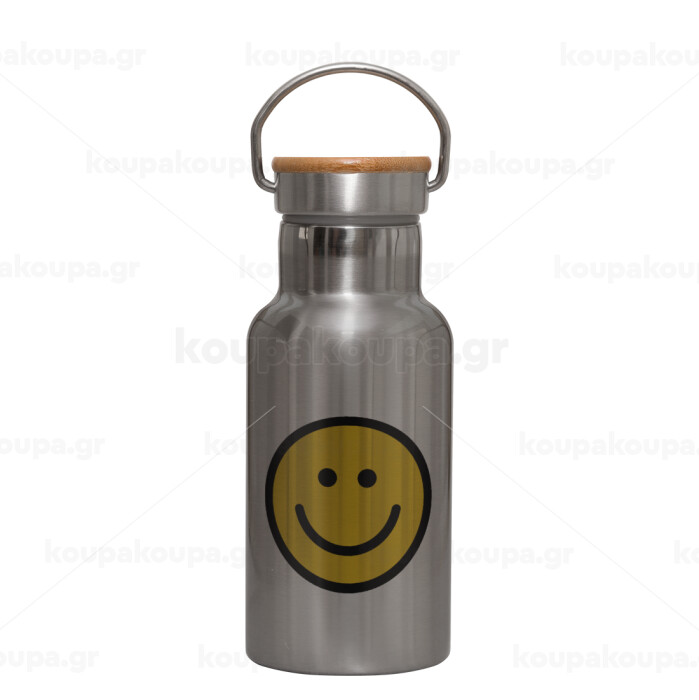 Smile classic, Stainless steel metallic thermos flask, silver with a bamboo lid, double-walled, 350ml.
