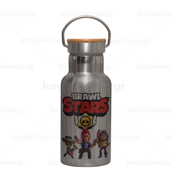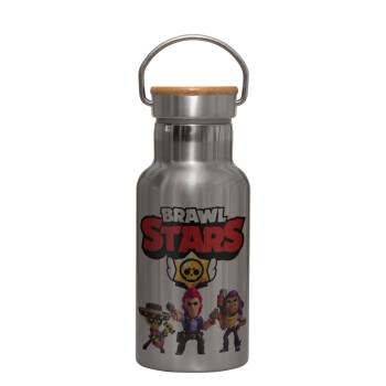 Brawl Stars Desert, Stainless steel metallic thermos flask, silver with a bamboo lid, double-walled, 350ml.