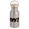 DayZ, Stainless steel metallic thermos flask, silver with a bamboo lid, double-walled, 350ml.