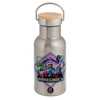 Minecraft Nether Portal, Stainless steel metallic thermos flask, silver with a bamboo lid, double-walled, 350ml.