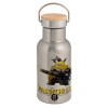 Palworld, Stainless steel metallic thermos flask, silver with a bamboo lid, double-walled, 350ml.